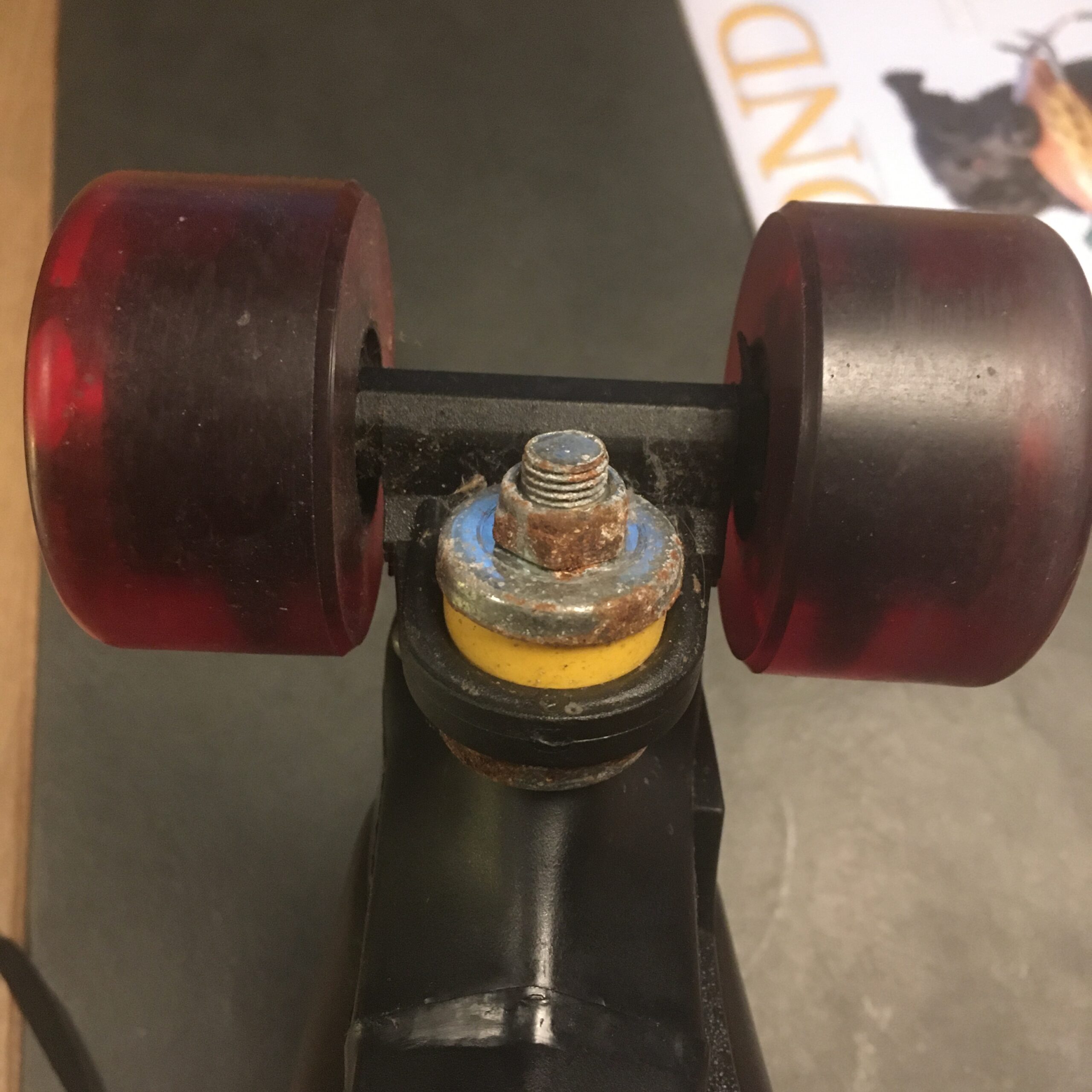 Mijn allereerste skates. RSI maat 38, zo scheef gemonteerd als een hoepel… maar ze rolden. Dit was na de upgrade!